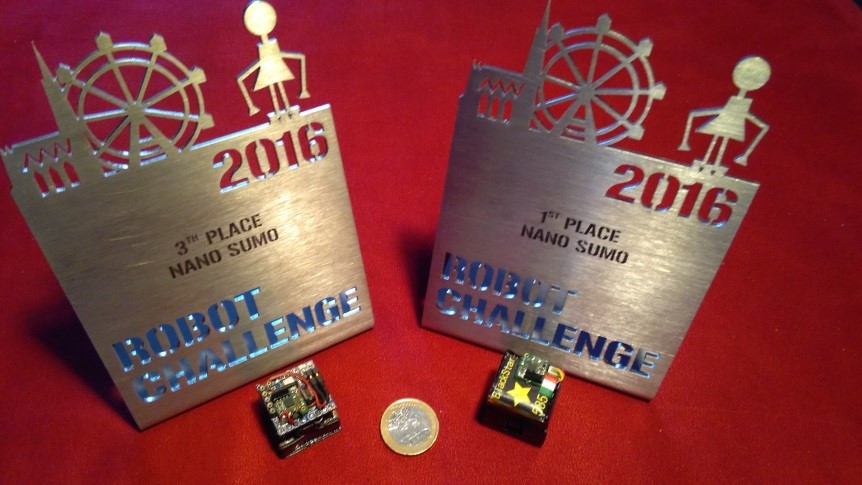 Nonostante non si tratti di una competizione tra robot costruiti con mattoncini LEGO®, merita sicuramente una menzione il risultato ottenuto nella categoria NanoSumo. Con una dimensione di 25x25x25 mm e un peso massimo di 25 g, i Nano Sumo sono i robot più piccoli presenti alla manifestazione: nonostante le loro ridotte dimensioni hanno tutte le caratteristiche dei loro fratelli maggiori nonché particolari obblighi (come la partenza radiocomandata dai giudici). Una vera sfida!