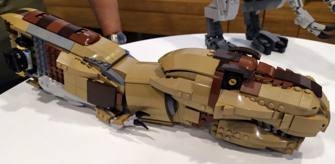 MS: Come potete vedere è enorme, ma è troppo pesante per gli hinge LEGO, non resterebbe in piedi e con le gambe era ancora peggio. È oltre i limiti LEGO di sicurezza. Non voglio dire che sarebbe troppo pericoloso, dopotutto è un dinosauro, ma sarebbe stato davvero troppo pesante. Non si poteva esporre in una vetrinetta. Potrebbe sopravvivere a un Fan Weekend per un paio di giorni, ma non resterebbe in una vetrinetta per sei mesi… o cinque anni. Ho dovuto rifarlo più piccolo.