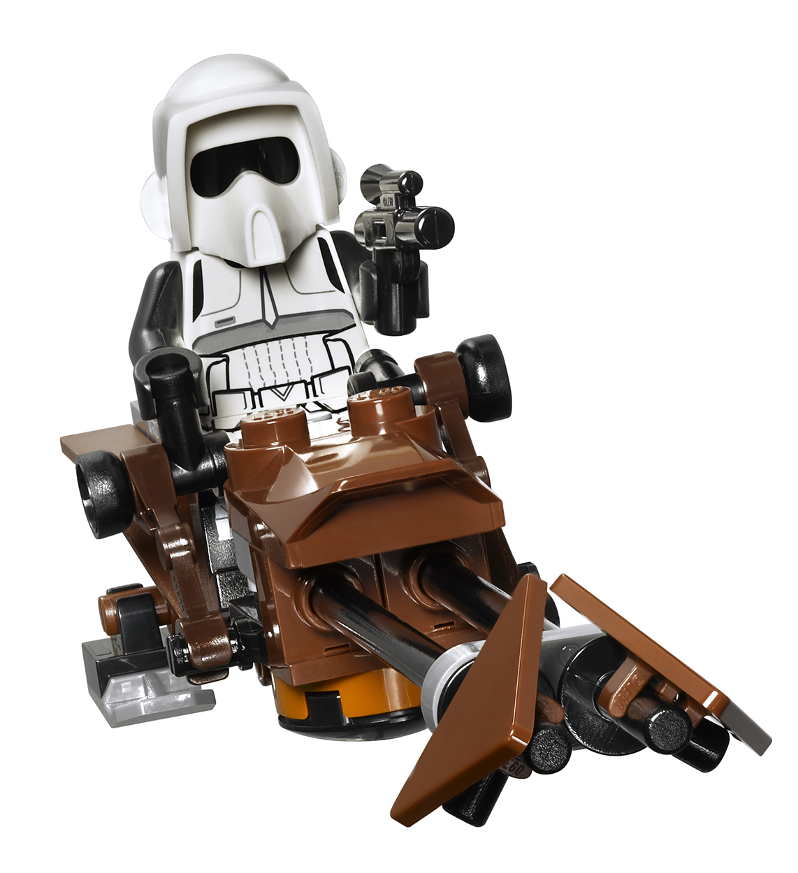 - E’ caratterizzato da dettagli altamente autentici, come la cabina di pilotaggio apribile per la minifigure, i cannoni a ioni rotanti azionabili dalla ruota sulla parte superiore, i pattini di atterraggio a scomparsa e lo spazio per il droide astromeccanico R2-BHD (incluso).